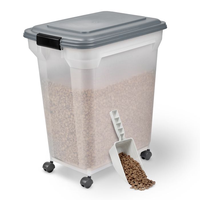 Iris Ohyama, Boite Croquette Chien Hermetique à Roulettes, 40L/15kg, Gris, Couvercle à Rabat avec Joint Etanche, Plastique, pour Chien, Chat, Friandises, Conteneur Croquettes, sans BPA, ATS-L