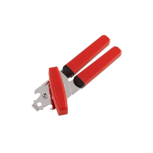 Fackelmann 09141 Ouvre boite, ouvre boite de conserve, ouvre bouteille 3 en 1, accessoires pour gaucher, Acier inoxydable, Plastique, 17 cm, Rouge/Argent