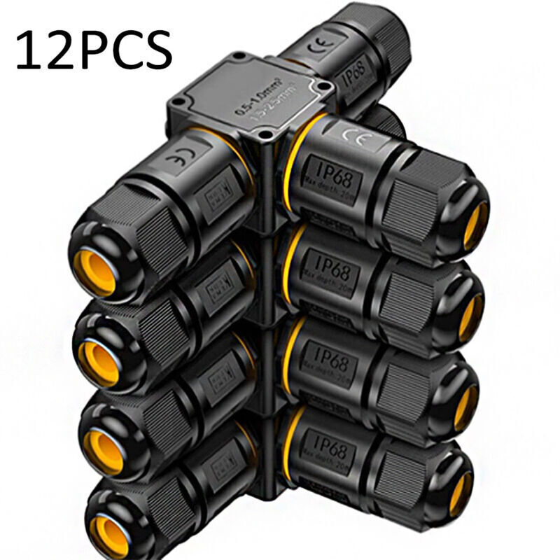 12 PCS Connecteurs de Câbles Étanches IP68 - Boîte de jonction 3 voies connecteur etanche 3 fils - Raccordement extérieur du jardin - Dérivation de