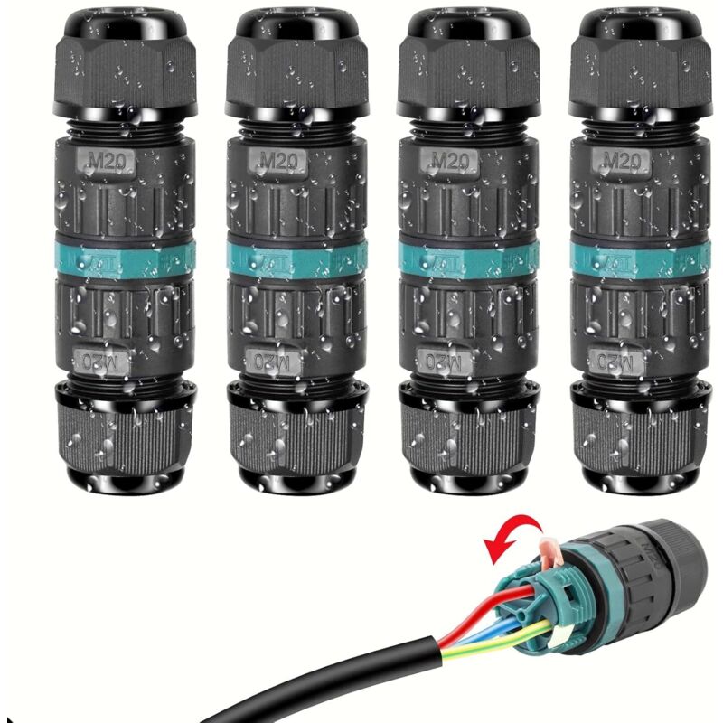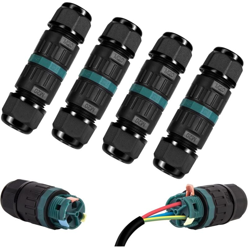 Paryou - 4 pcs Connecteurs de Câbles Étanches IP68 - Boîte de jonction 3 voies connecteur etanche 3 fils - Raccordement extérieur du jardin
