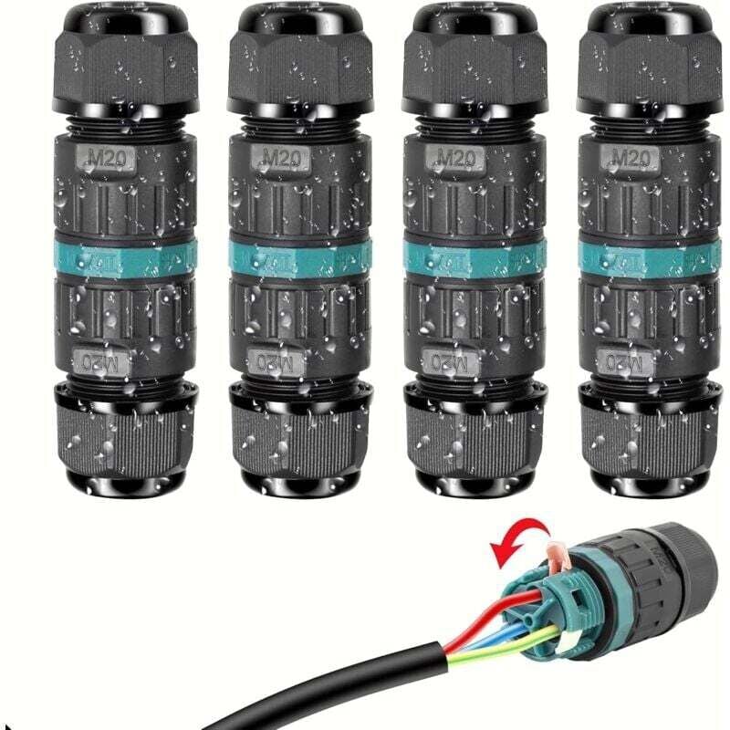Boîte de Jonction étanche IP68, Boite de Derivation Etanche Exterieur, Boîtier de Connecteur de Câble 4 Voies Connexions pour Câble Ø4mm-12mm,