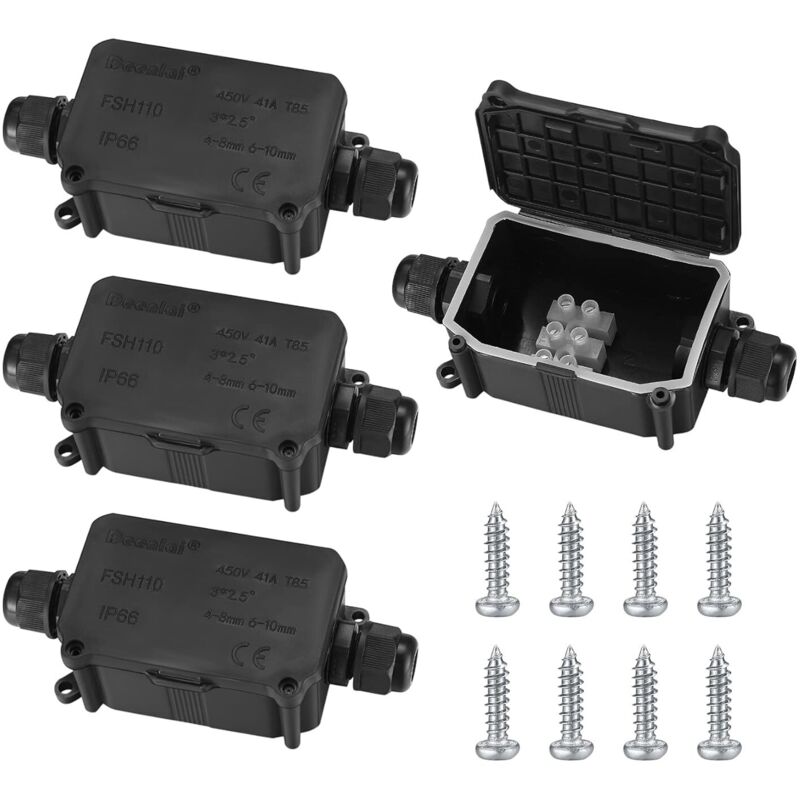 Ahlsen - Boîte de Jonction étanche IP68, Boite de Derivation Etanche Exterieur, Boîtier de Connecteur de Câble 4 Voies Connexions pour Câble 9-12mm
