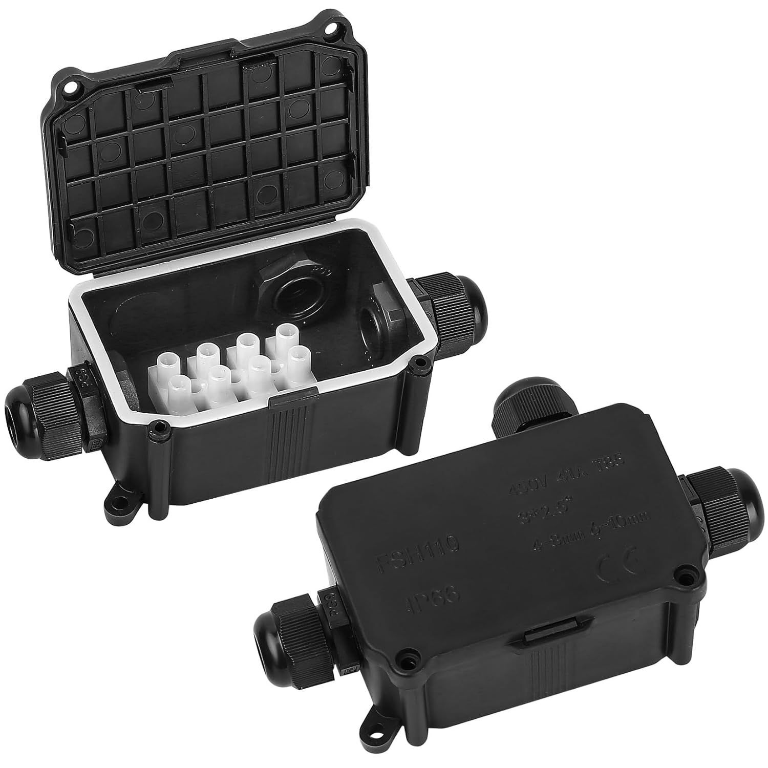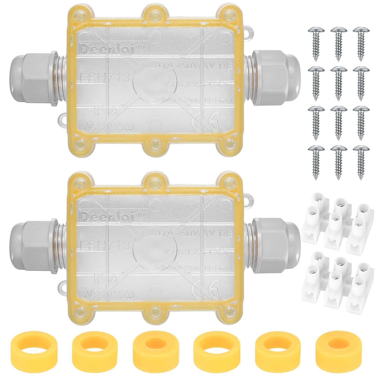 2 Pièces Boite de Derivation Etanche Exterieur, Boite Etanche Electrique Exterieur, Boîte de Jonction étanche IP68, 2 Voies Connecteurs Boîtier Électrique Extérieur Ø 5 mm-15 mm