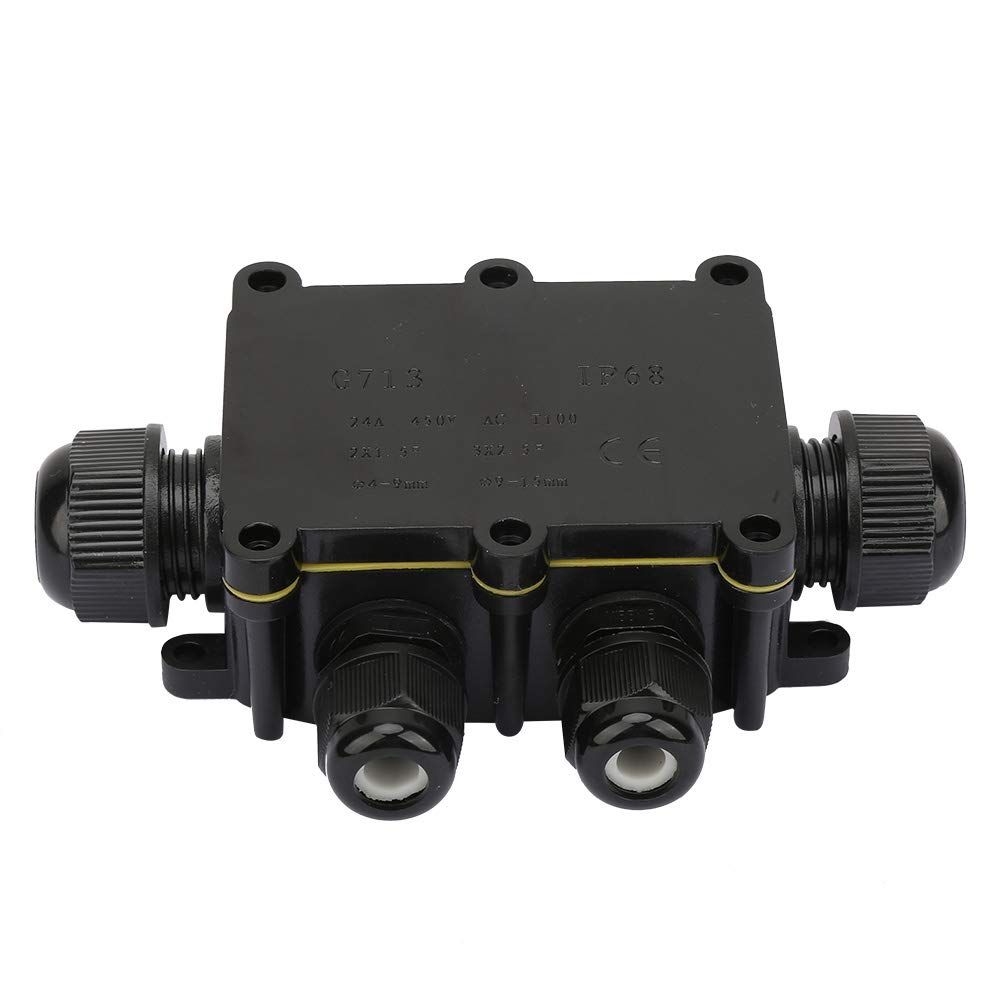 Boîte de Jonction de Plein Air,IP68 Boite de Derivation Etanche Exterieur,Boîte de jonction électrique jardin extérieur 4 Voies Connecteurs Boîte pour Câble Ø 4 à 14mm (3 Voies, Noir)