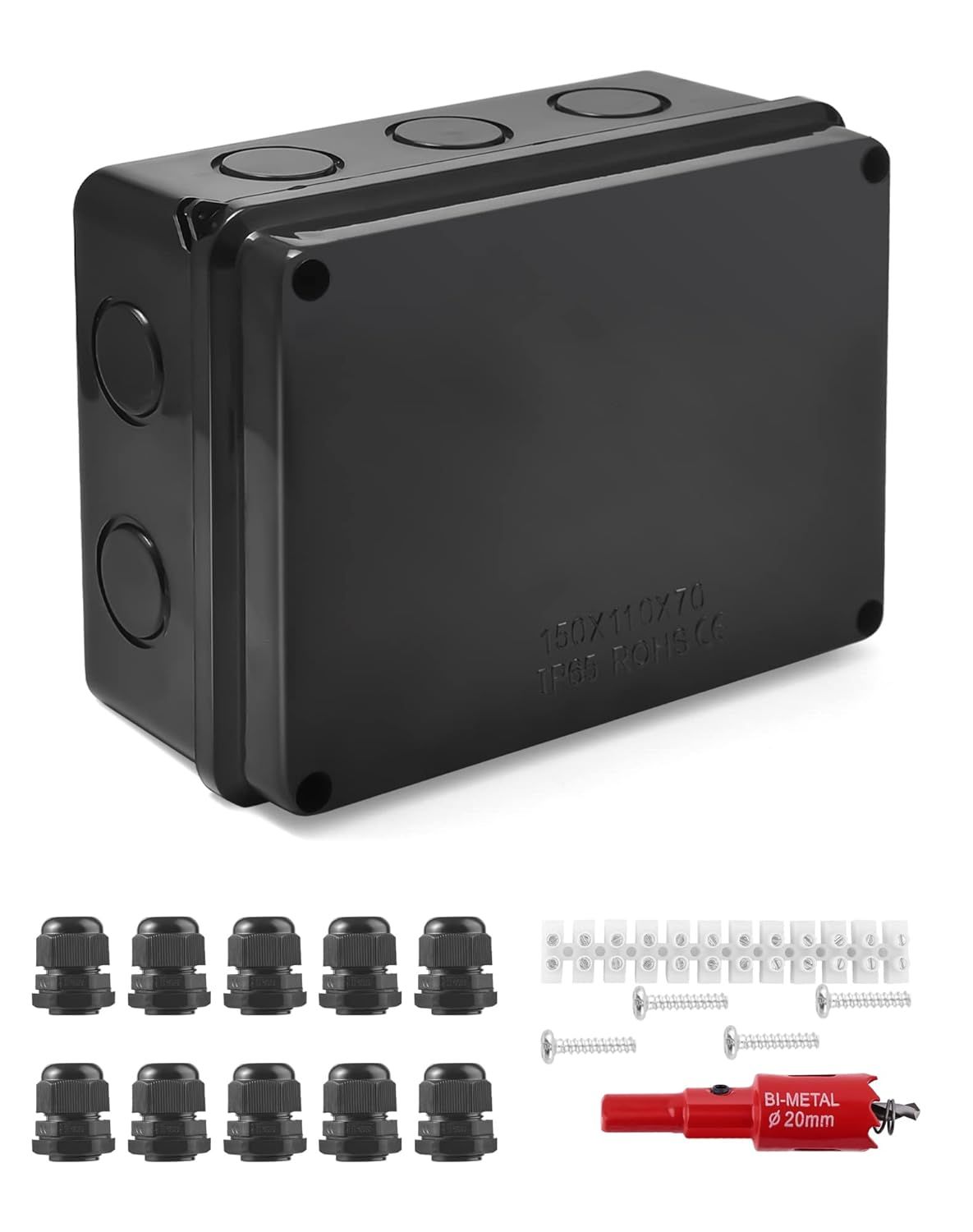 Boîte de Jonction IP65 en Saillie 15x11x7cm Boîte de Jonction Étanche Exterieur en Saillie Jardin Pièce Humide en Saillie Boite de Derivation Electrique M20 pour Câble Ø6-12 MM -10 Voies- Noir