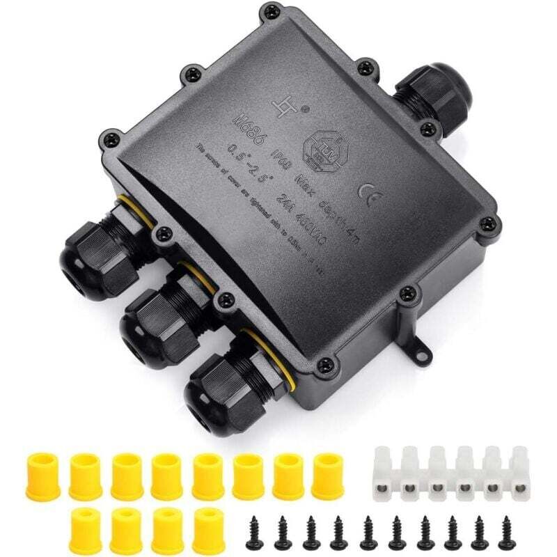 EGLO Boîte de jonction étanche, raccord électrique extérieur avec 3 voies, boîte de dérivation en plastique noir, IP68