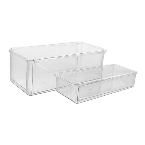 Hohopeti Boîte de Rangement pour Réfrigérateur à Tiroir Moyen, en Plastique Cristal Transparent, Boîte de Conservation des Fruits et Aliments pour Congélateur, Organisateur Coulissant