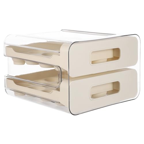 WEKADRIN Boîte de Rangement pour Œufs au Réfrigérateur Tiroir Coulissant 32 Compartiments Plastique Alimentaire Crème Empilable Support à Œufs Frais Antidérapant Cuisine et Pique-Niques