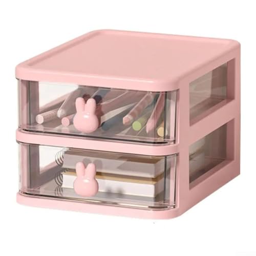 Boîte de rangement de bureau à trois niveaux avec fonction tiroir coulissant et cloisons internes pour un placement organisé (2 couches A rose)