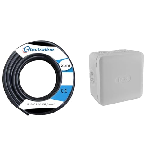 Electraline 20218288D Couronne U-1000 R2V 3x2,5mm², 25 mètres, Noir & Boite de derivation electrique - etanche exterieur - IP55 85X85 - Debflex - 718806 - Polypropylène, Gris