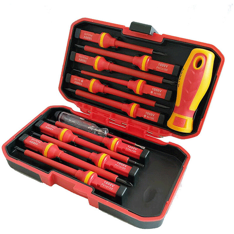 Isolé tournevis électricien 1000V Set Conseils magnétiques interchangeables Outils de réparation électrique Kit Boîte de 13pcs