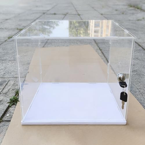Xyrona Boite Acrylique Vitrine en Acrylique avec Serrure à Clé, Boîte Décorative de Bureau pour Bijoux/Souvenirs/Modèles, Organisateur Rectangulaire Transparent(45x45xH40cm/18x18x16)