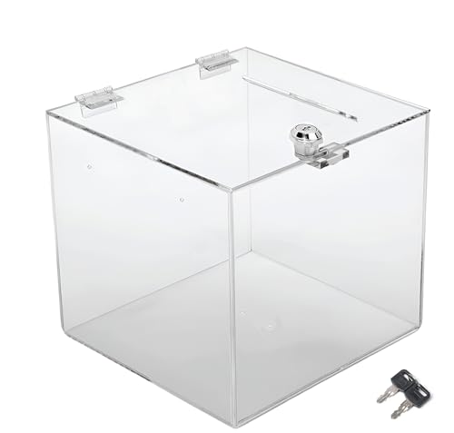 FENYW Boîte À Dons En Acrylique, Boîte À Donation, Boite A Suggestions, Urne Transparente, Urne De Vote, Boîte De Rangement Pour Bulletins De Vote Dons Votes Commentaires(16x11.8x10cm)