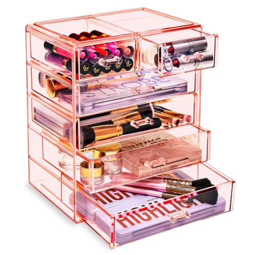 Sorbus Boîte de rangement en acrylique pour maquillage et bijoux 4 grands et 2 petits tiroirs Rose