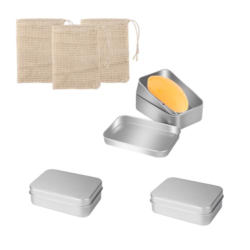 Gativs Boîte à Savon Amovible 3 Pièces Boîte à Savon en Aluminium Boite a Savon Voyage en Aluminium Boite Metal Porte Savon avec Égouttoir Amovible Boite à Savon Solide, avec 3 Sac à Savon en Sisal