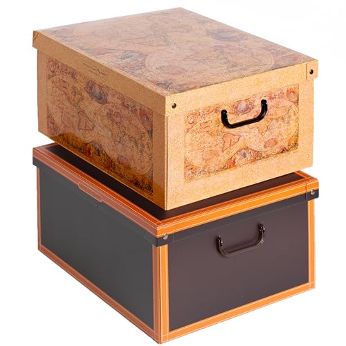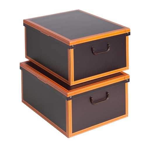 Kanguru Lot de 2 Boite de Rangement avec Couvercle, Boite en carton, Rangement Vetement, Meuble de Rangement Chambre, Bureau, Panier de Rangement, Organisateur Tiroir, 40x50x25 cm CUOIO/CUIR Large