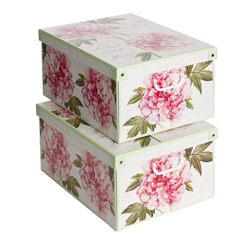 Collection Peonie Pivoines Boite de Rangement avec Couvercle, Boite en carton, Rangement Vetement, Rangement Chambre, Bureau, Organisateur Tiroir, Boite Cadeau, Lot de 2 boites LARGE