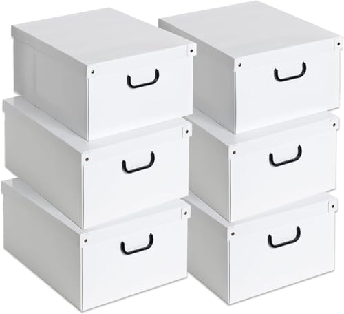 Lavatelli Lot de 6 Boite de Rangement avec Couvercle, Boite en carton, Rangement Vetement, Meuble de Rangement Chambre, Bureau, Panier de Rangement, Organisateur Tiroir, 40x50x25 cm Blanc Large