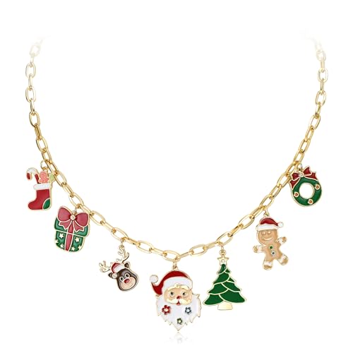 EVER FAITH Collier pendentif de Noël pour femme, chaussette cadeau boîte cadeau renne Père Noël sapin de Noël pain d'épice homme couronne de Noël thème vacances pendentif colliers bijoux cadeaux