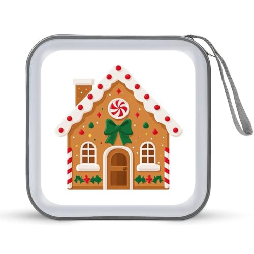 Jubonexis Boîte de rangement portable pour CD et DVD Motif maison en pain d'épice Vert
