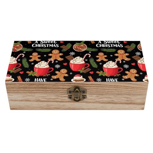 FJQWKLF Boîte à bijoux en bois avec fermoir, organisateur de rangement décoratif motif pain d'épice rouge de Noël, coffret à souvenirs pour mariage et décoration intérieure