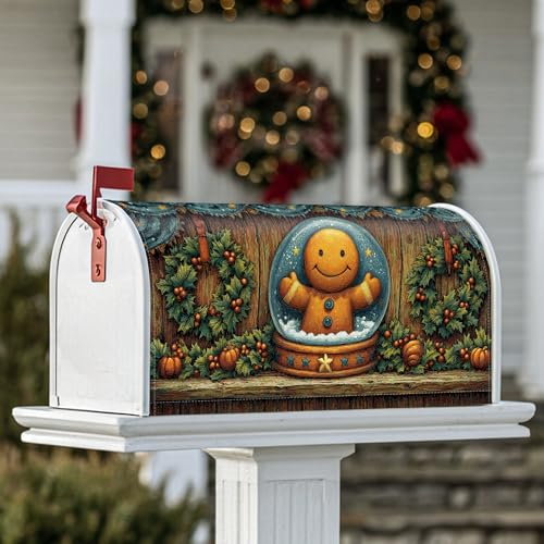 Housse de boîte aux lettres magnétique en forme de bonhomme en pain d'épice pour décoration extérieure de cour, 45,7 x 53,3 cm, motif boule à neige et houx
