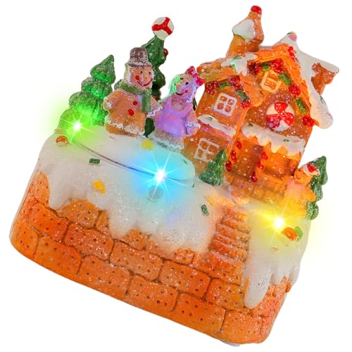 Oxtxuzdm Boîte à musique rotative en forme de bonhomme en pain d'épice pour vacances, village de Noël, décoration de table en résine avec lumière LED