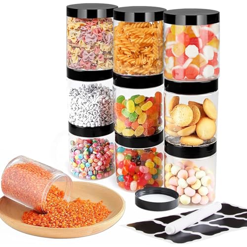 Huanmin 9PCS Boite a Farine 250ml Boite Hermetique Alimentaire, Rangement Plastique Cuisine, Ensemble de Pots de Stockage pour Épice, Spaghetti, Café, Céréales