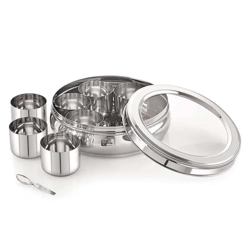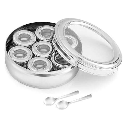 LUNICASHA Récipient en Acier Inoxydable avec 5 Grilles, Boîte à Épices, Boîte à Pizza avec Couvercle