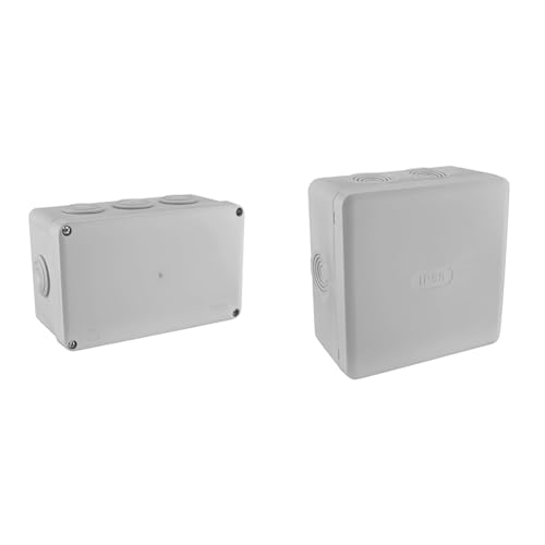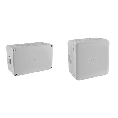 Debflex 718050 Electrique Exterieur-Boîte de dérivation étanche en saillie carrée IP55 & 718808 Boite de derivation electrique etanche exterieur - IP55 115X115 cm, Gris