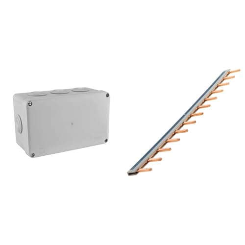 Debflex 718050 Electrique Exterieur-Boîte de dérivation étanche en saillie carrée IP55 / Dimensions 170 cm x 105 cm x 70 mm / 8 entrées Gris & Peigne 13 modules noir/blanc longueur 220mm
