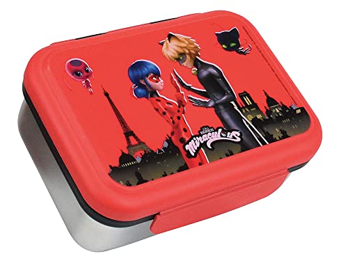 MIRACULOUS Fun House 006086 Ladybug Boite goûter INOX pour Enfant H.6,5 X L.17 X P.13,5 CM Rouge