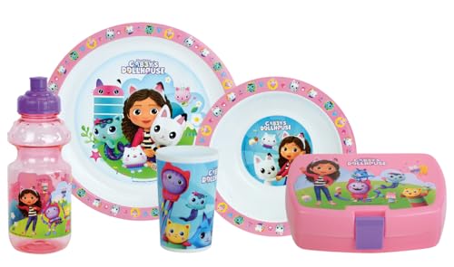 FUN HOUSE | Set Boite Repas Gabby Et La Maison Magique Pour Enfant | 1 Verre, 2 Assiettes + Gourde et Boite Goûter | Licence Officielle | Réutilisable et Micro-ondable | Marque Française | Idée Cadeau
