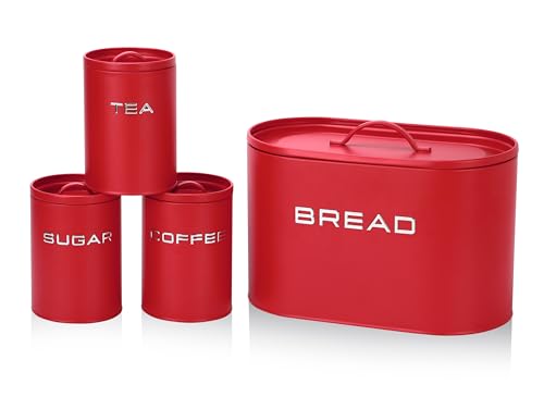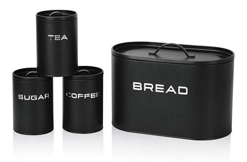 GOURMETmaxx Boîte à pain avec ensemble de 8 boîtes de conservation | Boîtes en métal élégantes et hermétiques avec couvercle et inscriptions pour pain, café, thé et sucre | Hermétique pour aliments