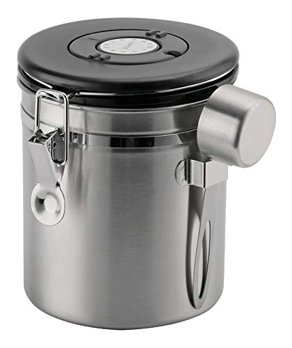 Café Olé CC-750S Boîte de rangement en acier inoxydable pour grains et café moulu, 750 g, cadran de suivi jour/date, cuillère de mesure, joint hermétique sous vide