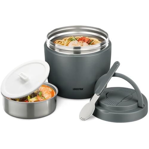 Itslife Boîte Alimentaire Isotherme, 970ml Boite Isotherme Repas Chaud, Lunch Box Isotherme avec Cuillère, Thermos Alimentaire Chaud en Acier Inoxydable, Thermos Isotherme pour Ecole Bureau, Gris