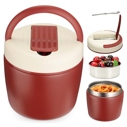 Fulenyi Boîtes Alimentaires isothermes, Boite Isotherme Repas Chaud Porte-Aliments en Acier Inoxydable à Double Couche pour Ecole, 630 l