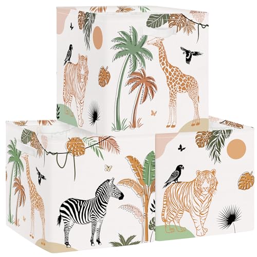 Clastyle Lot de 3 Boite Rangement Tissu Animal Jungle Cube de Rangement Pliable Adolescent Panier Kallax pour Salle de Bain,Blanc,30x30x30 cm
