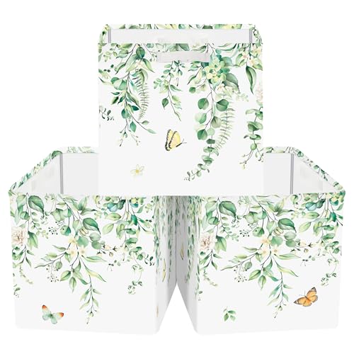 Clastyle Lot de 3 Boite Rangement Tissu Feuille Cube de Rangement Pliable Femmes Panier Kallax pour Salle de Bain, Eucalyptus, 30x30x30 cm