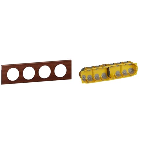 LEGRAND - Plaque Céliane Matières 4 postes - finition Acajou avec Boîte multipostes Eco Batibox 4 postes 8 à 10 modules - profondeur 40mm