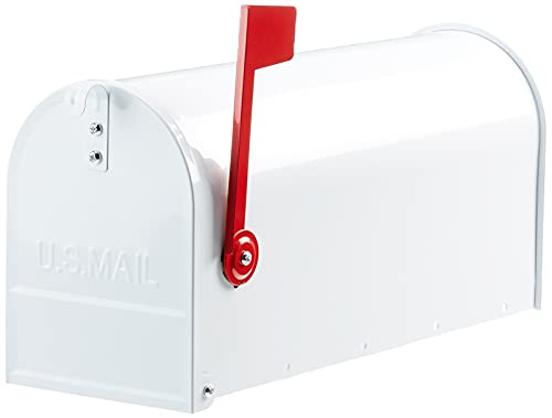 Wiltec Kit Boîte aux Lettres américaine et Support Mural, 180 x 220 x 480 mm, Blanche, Acier galvanisé, Boîte Postale US Mailbox avec Fanion Rouge