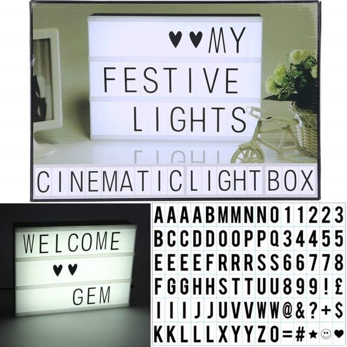 Boîte Lumineuse lettre et symboles a message Boîte à Lumière LED Cinema Lumineuse pour Décorer Anniversaire/Famille/Boutique/Fête