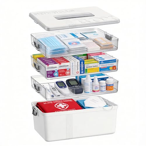 SUBZONAL-Boite Pharmacie, Medicaments Rangement, Medicament Médicament de pour Verrouillable avec Poignée de Transport, Boîte à Pharmacie à 3 Étages, pour Votre médecine Domestique