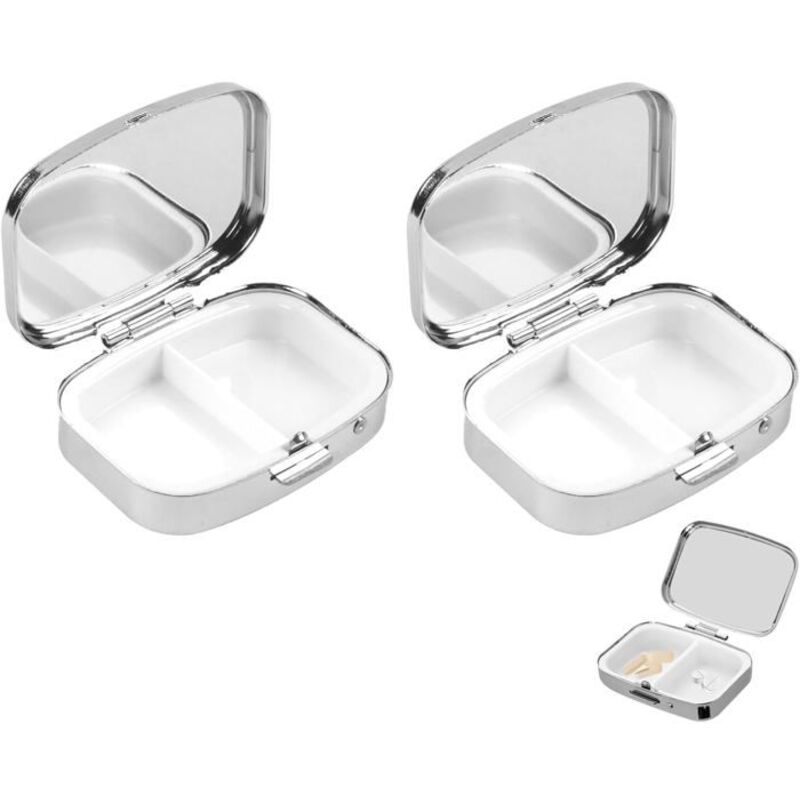 Lot de 2 Boite Medicaments Rangement,Métal Petit Pilulier Voyage,Boite Medicament,Mini Pilulier pour Poche de sac à Main-PILULIER