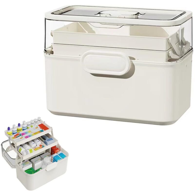 Sightday Boite Pharmacie,3 Couches Boite Medicaments Rangement,Polyvalent Rangement Medicament,Poignée,Boite Medicament Utiliser Un Bureau D'école Familiale(crème)