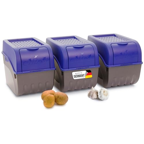 Novaliv Boîte de Rangement pour Pommes de Terre | 3 Grandes Boîtes de 9 L | Bleu Marine | Empilable pour Oignons, Fruits et Légumes