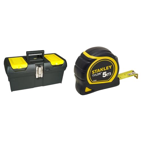 Stanley 1-92-065 Boite A Outils 2 Organiseurs Sur Le Couvercle - Robuste - Attaches métalliques & 1-30-697 - Mètre Tylon Bi matière 5m X 19mm - Ruban Anti-Corrosion - Blocage Du Ruban