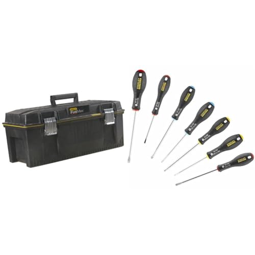 STANLEY FATMAX Boîte à Outils Étanche 58 cm - Résistant à l'Eau - Grande Capacité de Rangement & Stanley 065438 Gamme FatMax Jeu De Tournevis Parallèle/Évasé/Cruciforme/Pozidriv 7 Pièces