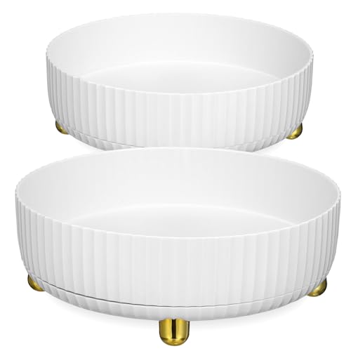 ULTECHNOVO Organisateur de Plateau Rotatif Cosmétique Grand et Petit Format en Polypropylène Blanc Perle, Boîte de Rangement Soins Peau, Bureau et Salle de Bain, Lot de 2 Pièces