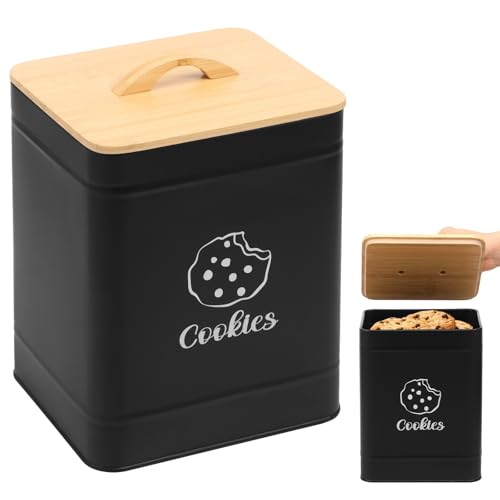 Boîte à biscuits avec couvercle en bambou et poignée, grande capacité, boîte à biscuits pour café, biscuits, bonbons, pâtisseries, noix, récipient hermétique pour la cuisson, la cuisine et la